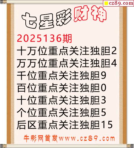 七星彩2025年136期财神独胆图迷