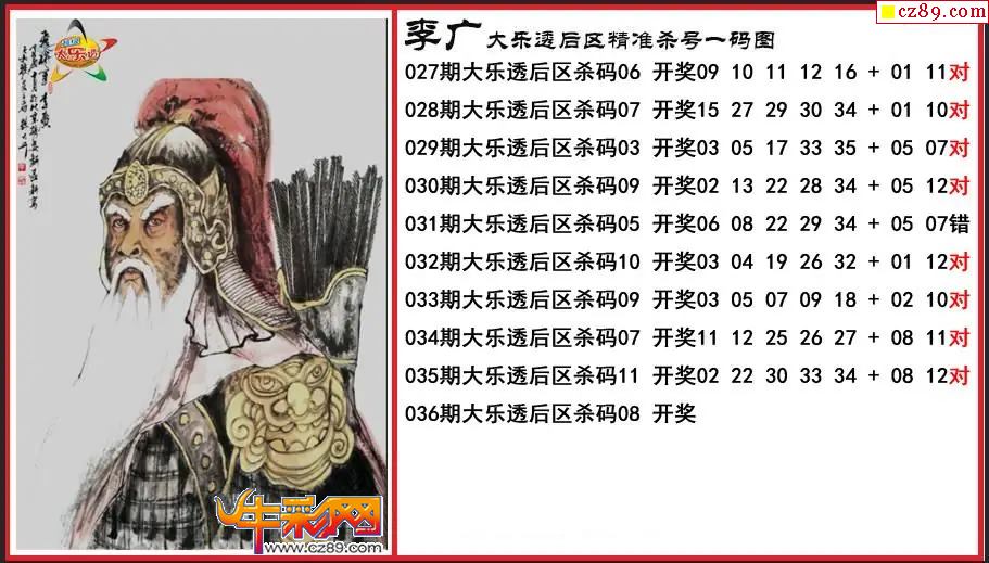 大乐透036期李广后区精准杀号一码图